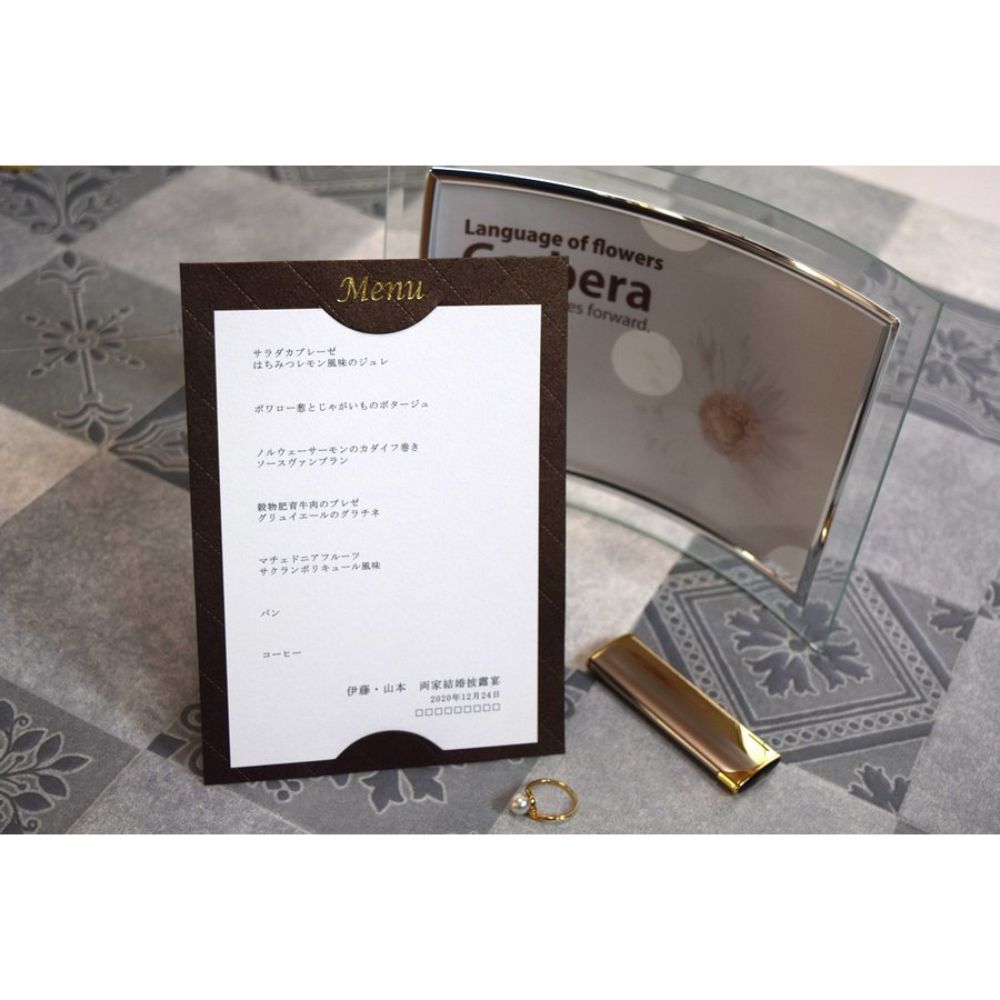 【結婚式 メニュー表】 コンプリート ブラウン (印刷込み)【結婚式 ペーパー メニュー表】