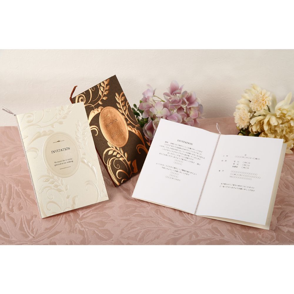 教会の柱や壁の彫刻の模様として用いられるアカンサスという植物がモチーフの招待状。