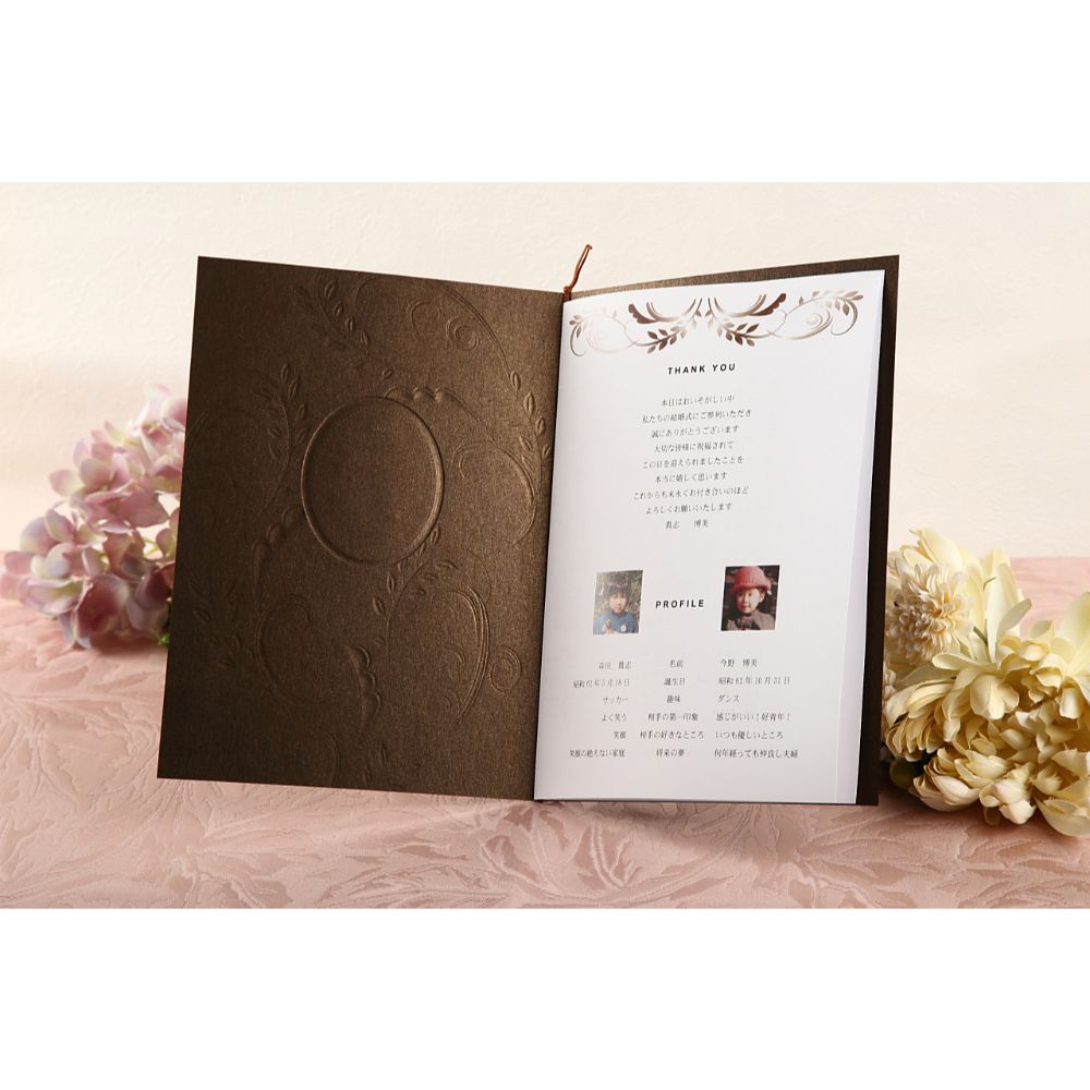 厚さのあるブロンズの高級紙に立体感ある模様。