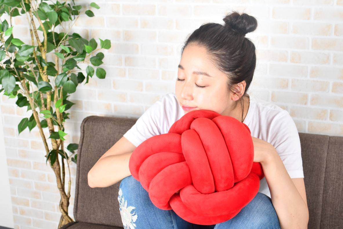 コロッとした可愛い見た目だけでなく、「結ばれてほどけない」縁起のいいクッションとして、結婚祝いや新居祝いなどの贈り物として選ばれています。