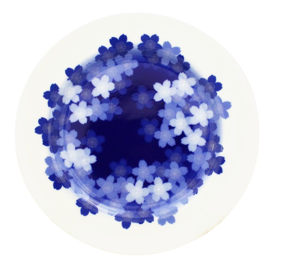 人生の節目を祝うかのように咲き、日本人の最も愛する花、桜。古くから日本人の美意識を育て、暮らしを彩ってきた花です。爛漫と咲き誇り幾重にも重なり合う桜の絨毯を香蘭社の鮮やかなコバルトブルーの白磁と美しいコントラストで表現しています。伝統的な瑠璃を用いた新しい技法で、香蘭社の伝統と先端が凝縮されたデザインです。