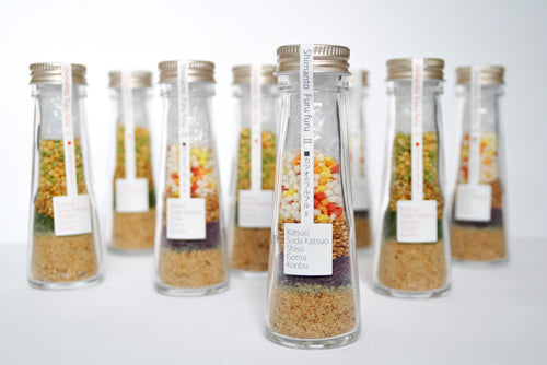日本でも世界でも類を見ない、鰹節や貴重な宗田鰹節の粉をベースに、昆布・煎り胡麻・ぶぶあられに青のりや梅しそが原材料の、すべて天然素材の、粉のドレッシング。