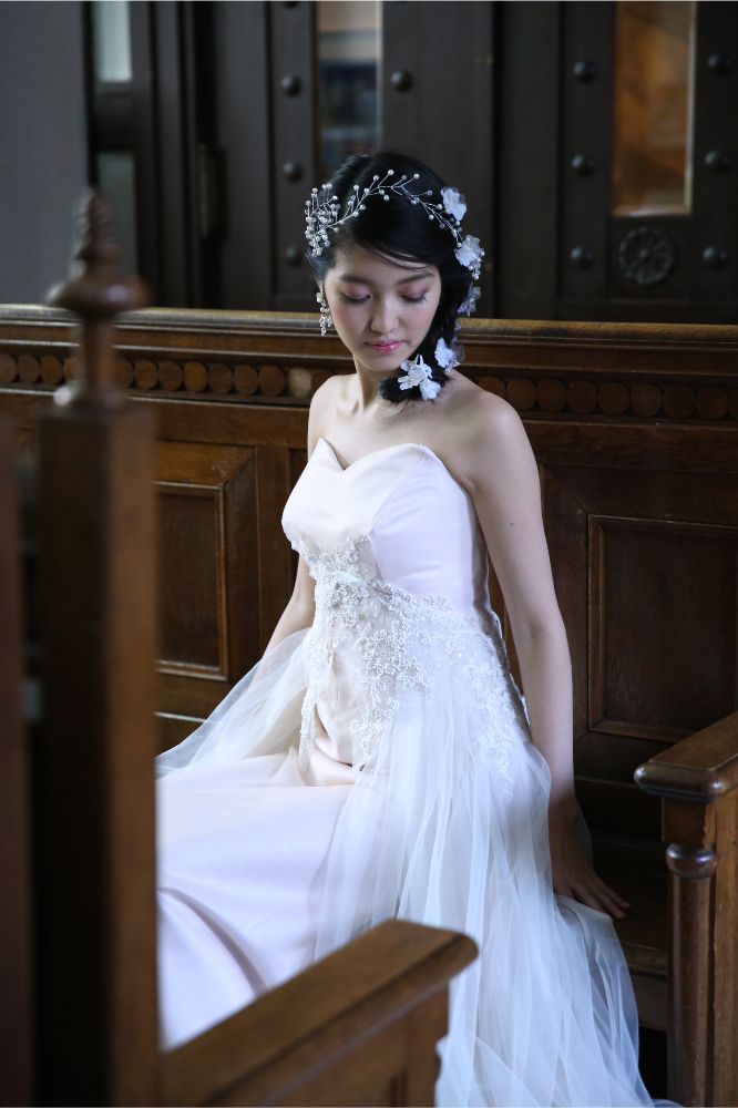 とろみのあるサテン生地で作ったマーメイドは、花嫁様の可憐な美しさを最大限に表現します。