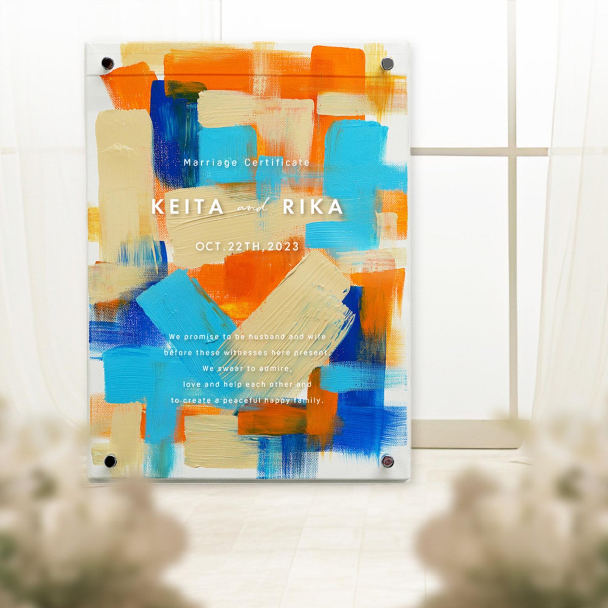 アートとしても空間を思い出と共に彩る ウェディングキャンバス結婚証明書。