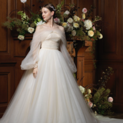 オフホワイトと、ホワイトのツートンカラーのチュールをふんだんに使用し