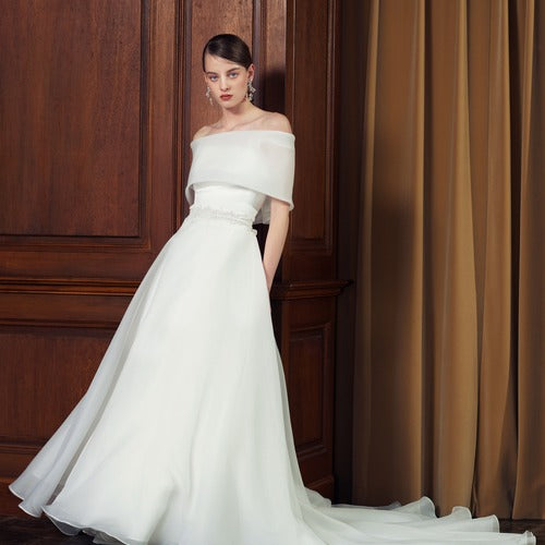 デコルテや、ネックラインの美しさを強調させ、より清楚な印象に。