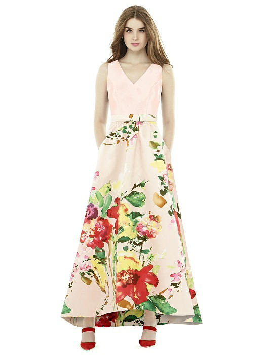 D723CP サテンツイル ブライズメイド 花柄プリント ロングドレス 2色 【結婚式 ブライズメイド アッシャー オーダーメイド】