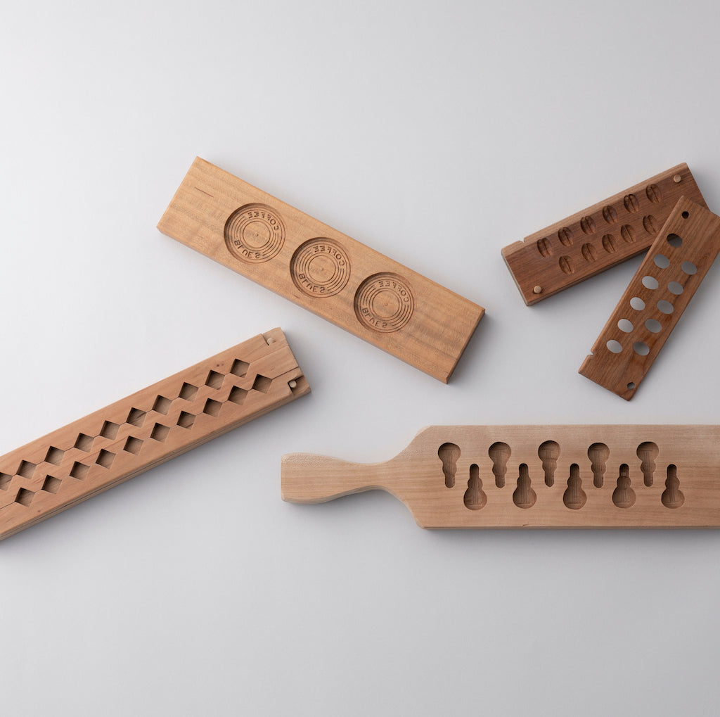 和三盆は全て手彫りの菓子木型と、手作業で作られた和三盆糖から作られています。優しい甘さと上品な味わいで、口に含むとスーっと溶けていくのは和三盆糖ならでは。手の跡を残した菓子木型から出てきた和三盆たちはそれぞれの物語を紡いでいきます。