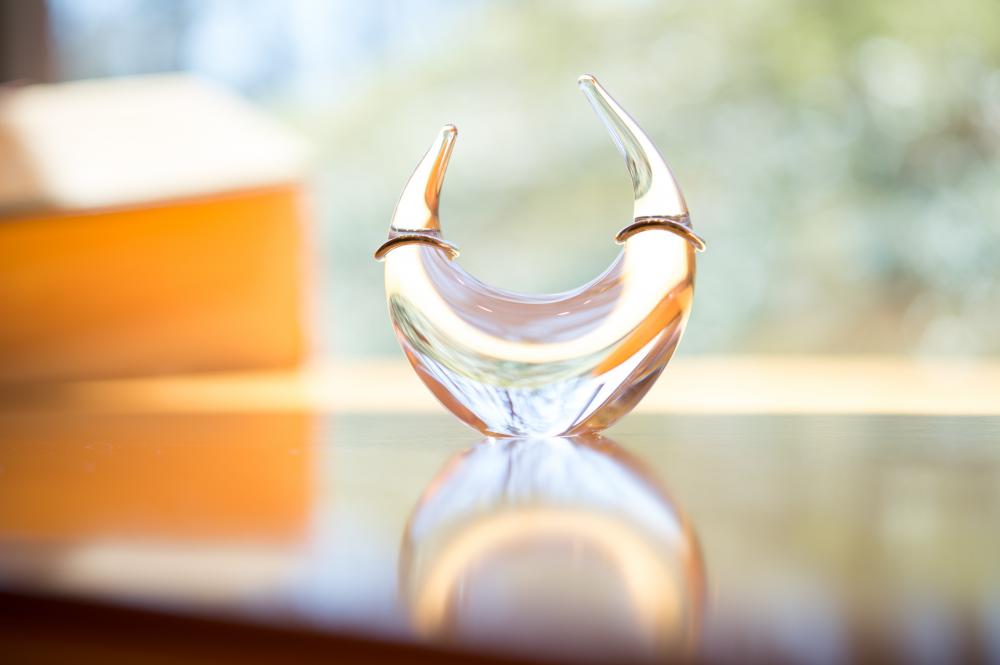 流れるような曲線が美しいガラスのリングピローです。