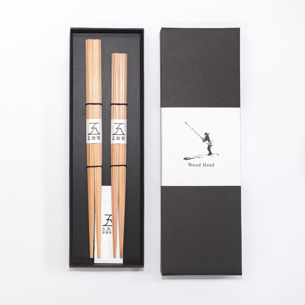 五稜箸木頭朱杉は、その木頭朱杉を五角形に削り出し無塗装で仕上げた箸です。