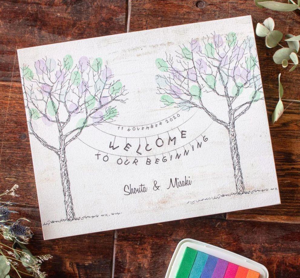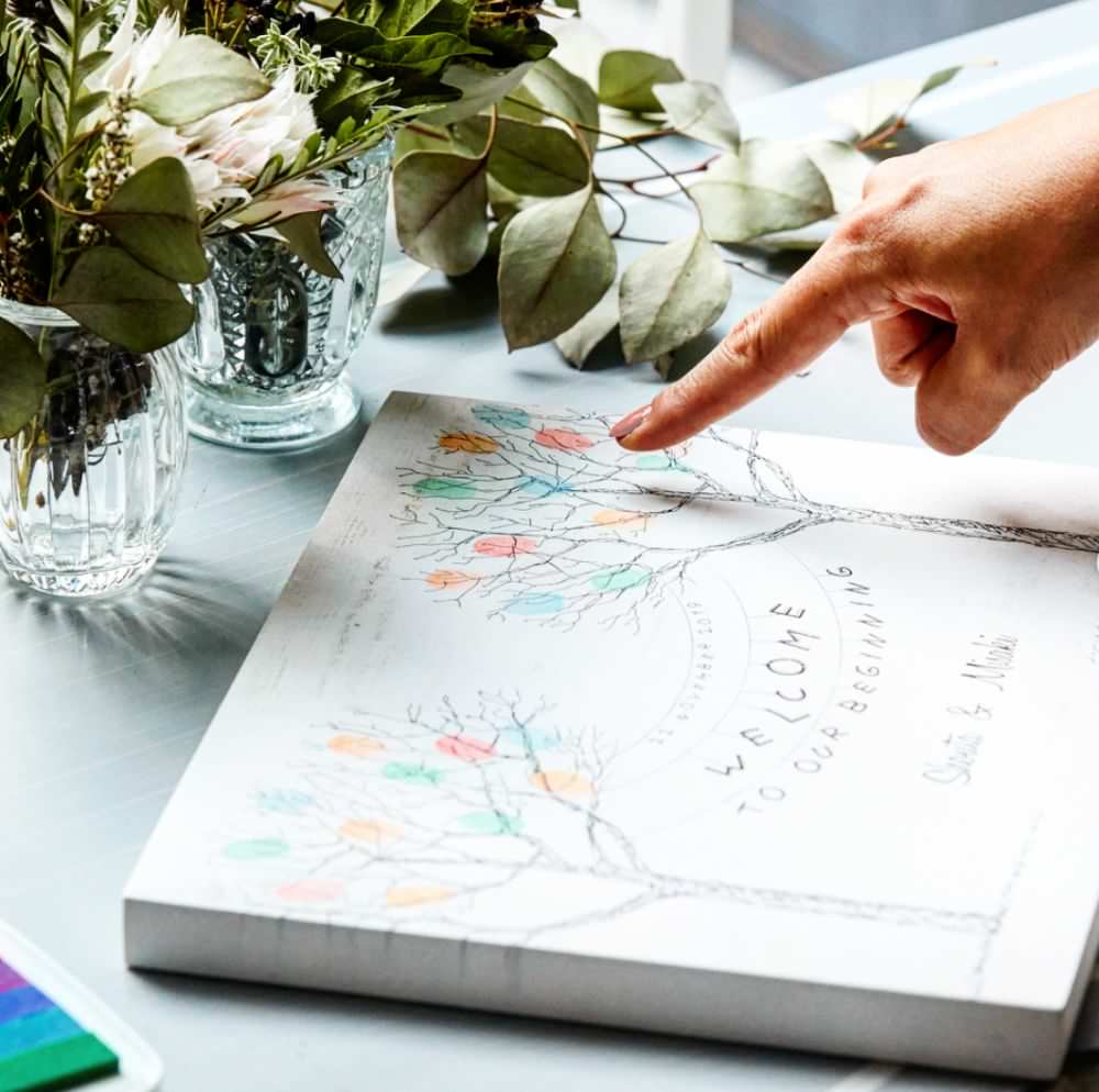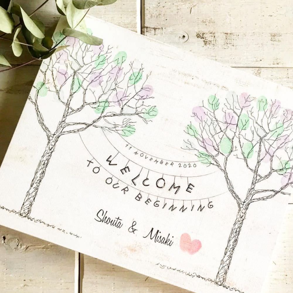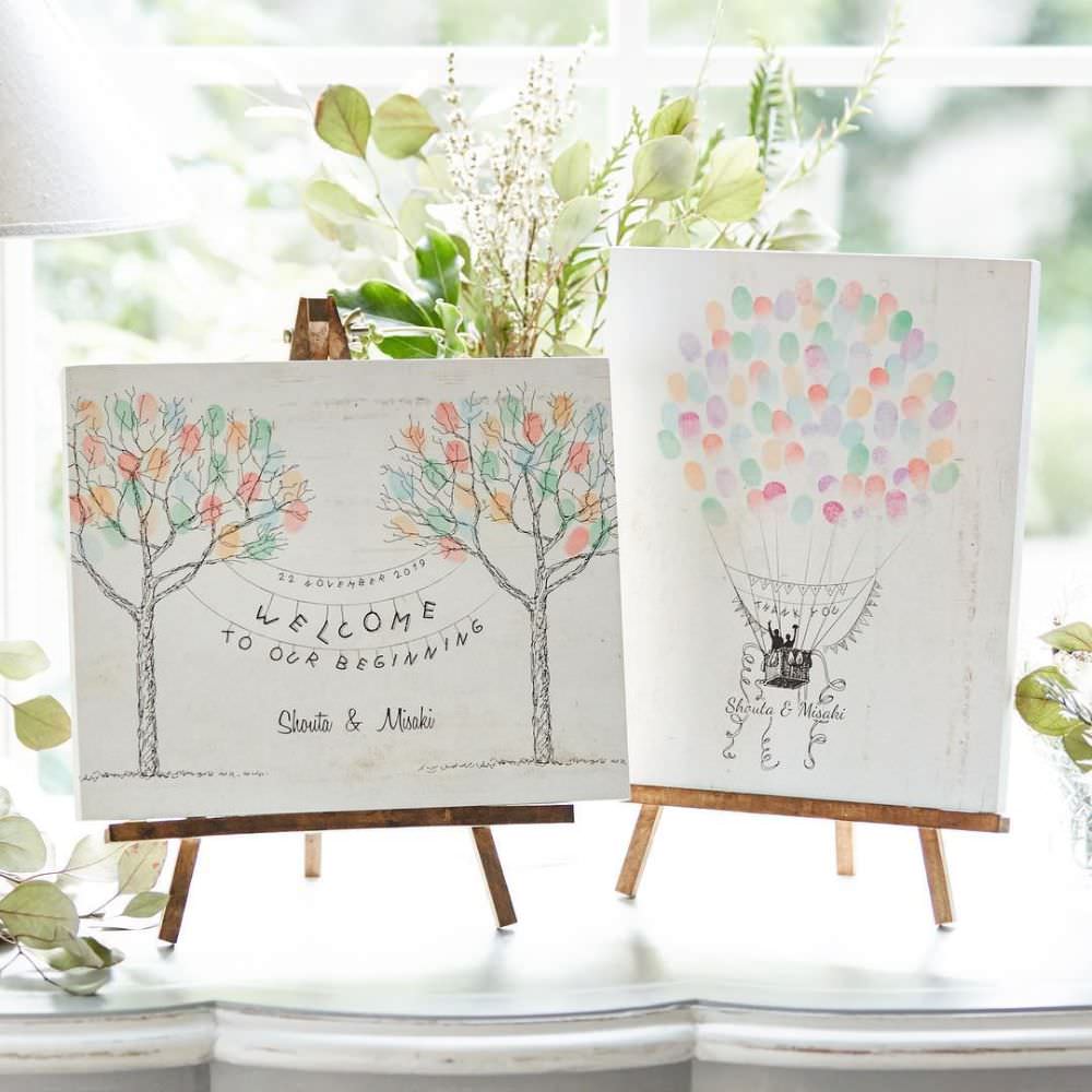 ゲストそれぞれが想い思いの色を押して完成する証明ボード。おふたりがご用意したボードがどんなアートとしておふたりの元へ帰ってくるのかは、挙式が終わるまでのお楽しみ。色とりどりのスタンプを用意して、カラフルに彩るのも色味を絞ってシックな仕上がりにするのもおふたり次第。ゲストみんなの想いが詰まったとっておきのボードは、おふたりの門出を祝う証。お部屋に飾れば、インテリアアートとしてさりげなくおふたりを見守ってくれます。