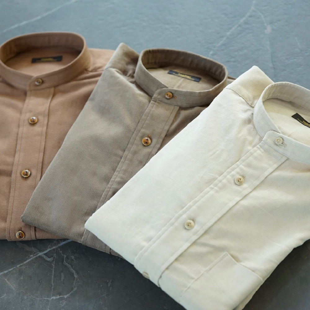 衿型をはじめ、ピンタック、比翼仕立て、スタッズボタン仕様、ダブルカフス、・・・などコーディネートに合わせてお好きなデザインでお作りいただけます。