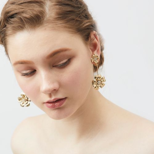大小のひなげしのような可愛らしいフラワーが揺れるカジュアルなデザインのイヤリング。シンプルな装いでも、華やかな装いでも幅広いスタイリングが可能です。
