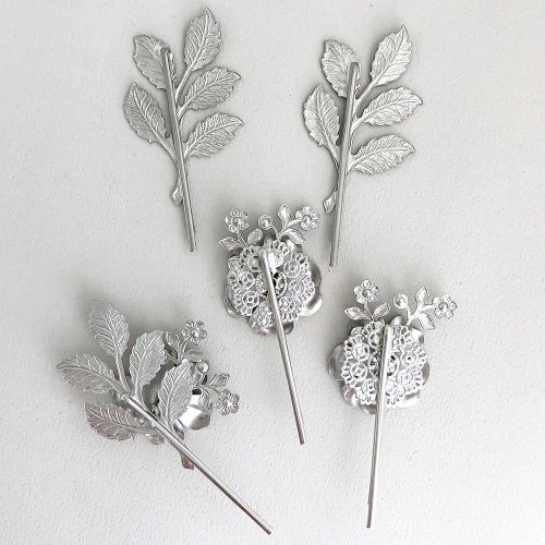 リーフやフラワーモチーフのシンプルなヘアピン5本セット。着け方を工夫して様々な装着が楽しめるセットです。