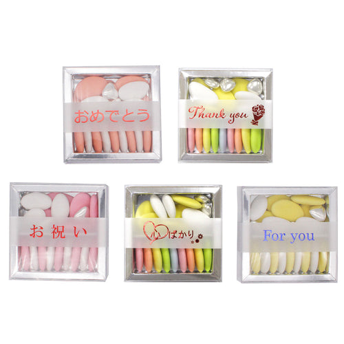 ホワイト(マット)には子孫繁栄の象徴としてイタリア・シチリア産のアーモンドを使用。パステルカラーやシルバーなどのカラフルなお色には甘さを抑えたチョコレートが入っています。珈琲や紅茶など、ティータイムのお供にもぴったりなフランス産ドラジェをお楽しみください。
