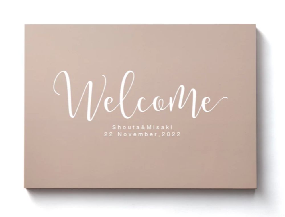 "ゲストを最初にお出迎えするウェルカムボード。ふたりの好みに合わせて組み合わせを楽しんで