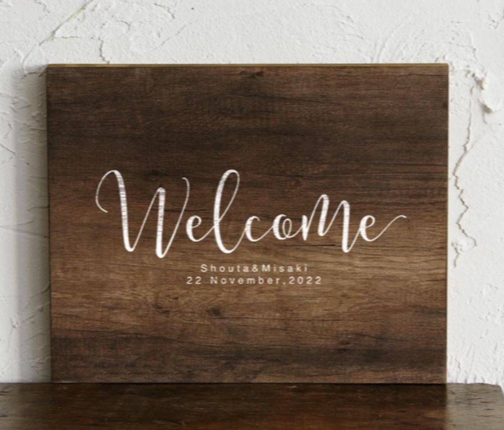"ゲストを最初にお出迎えするウェルカムボード。ふたりの好みに合わせて組み合わせを楽しんで