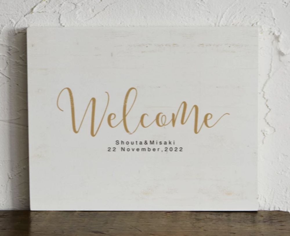 "ゲストを最初にお出迎えするウェルカムボード。ふたりの好みに合わせて組み合わせを楽しんで