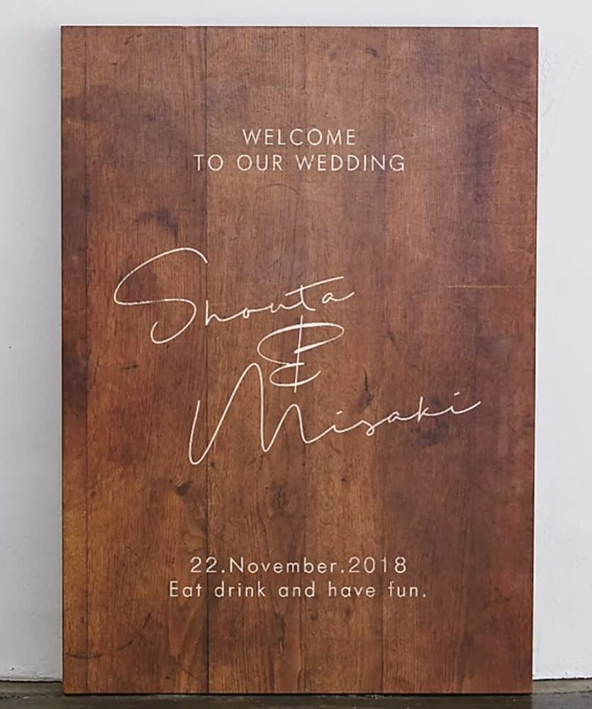 サイズ・背景の木質・デザインを選んで作るセミオーダータイプのウェルカムボード。しっかりとした木板をベースに採用することで、リースやグリーンを掛けたりとアレンジも自在。お気に入りの組み合わせを見つけて、挙式当日はもちろん挙式後もふたりの想いが詰まった世界にひとつだけのオリジナルインテリアとして、お部屋にお飾りいただけます。"