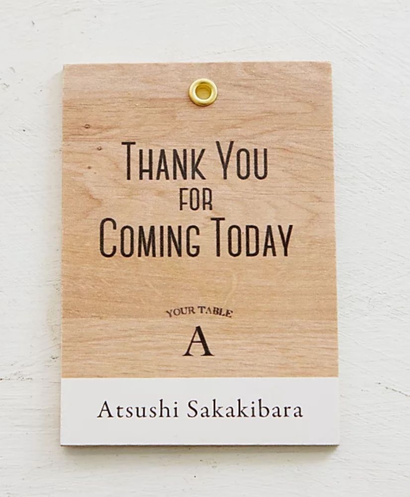 テーブルナンバーとお名前を記した席次表の新しいカタチ。エスコートタグ。ウェルカムスペースにエスコートタグを飾り、ゲストは自分の名前が記載されたタグを手に取り、テーブルNo.を確認する事で席次表と同じ役目を果たすアイテムです。演出+機能性を兼ね備えたゲストが手にとって嬉しいアイテム。裏面には、おふたりがゲストのためにセレクトしたお料理メニューが入るので、+メニュー表としてもお使い頂けます。