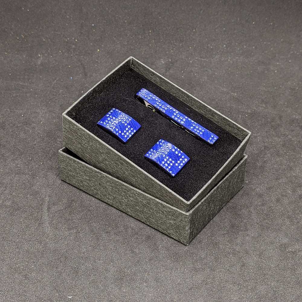 【着物職人手作り 金彩ネクタイピン・カフスボタンセット】ブルー Nsplus 19667 【結婚式 カフス タイピン 小物】