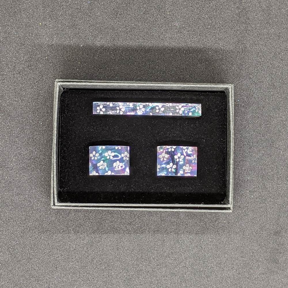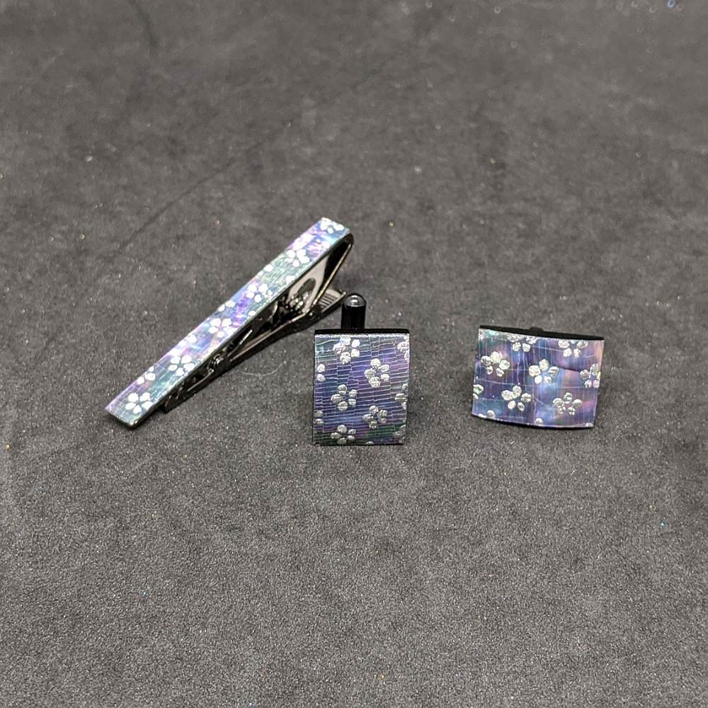 【着物職人手作り 金彩螺鈿ネクタイピン・カフスボタンセット】シルバー Nsplus 19673 【結婚式 カフス タイピン 小物】