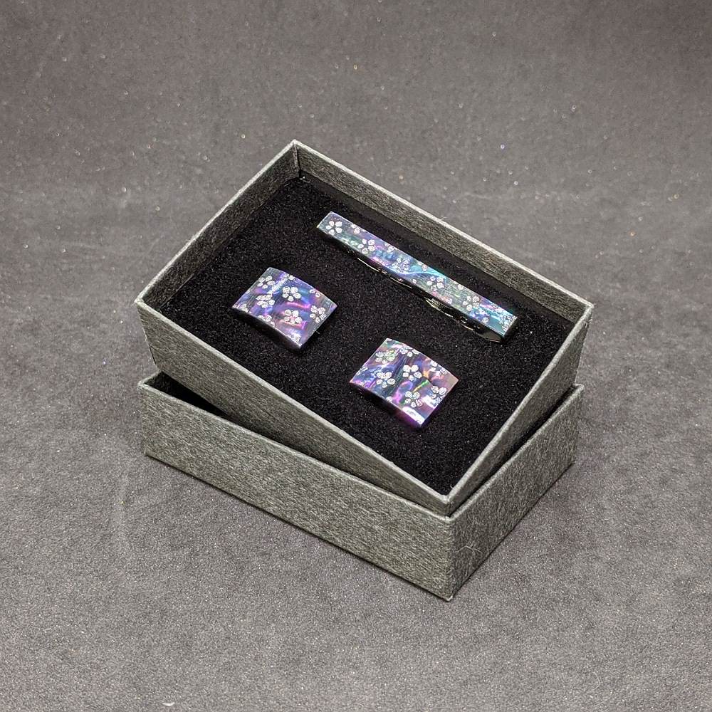 京都で打掛(和装の花嫁衣装)を作っている着物職人が作ったネクタイピンとカフスボタンのセットです。