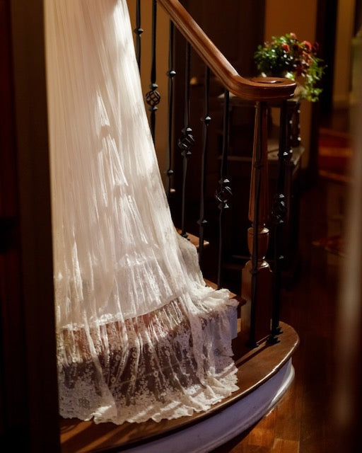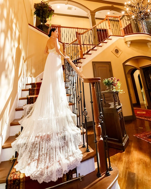 「アンティークエレガント」をコンセプトにをコンセプトにヨーロッパで収集したアンティークレースとフランスで織られた上質なシルク生地を組み合わせ、お客様のスタイルとロケーションに合わせたウェディングドレスをデザイナー自らがひと針ひと針想いを込めてハンドメイドで製作しております。