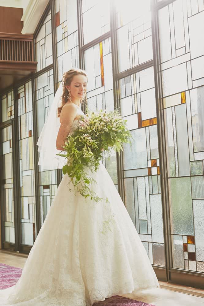 素敵なある日に大好きな花がいっぱいのブーケを持って祝福される。