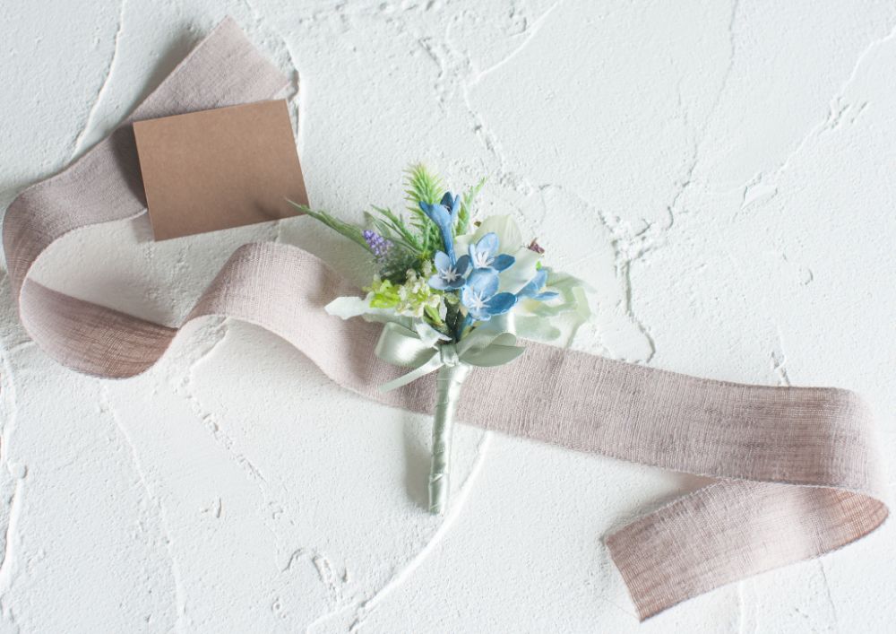 コチラはブーケのイメージにぴったり合わせたブートニアもセットとなっております。
