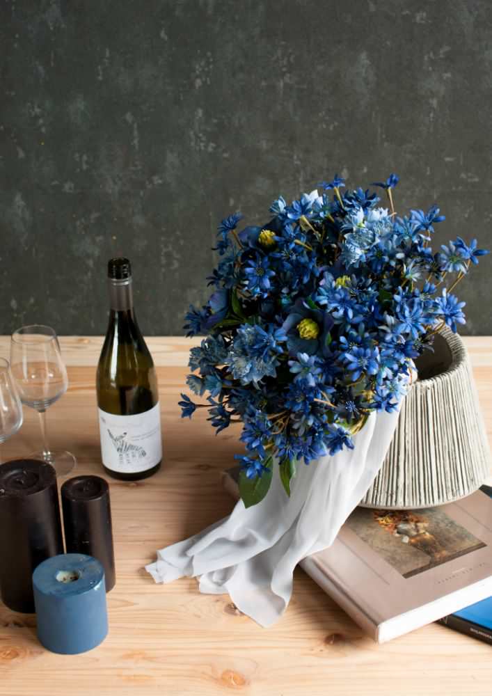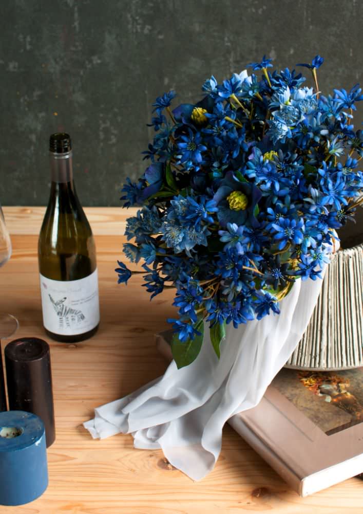 鮮やかな青一色でデザインされた、可憐で華やかなブーケです。