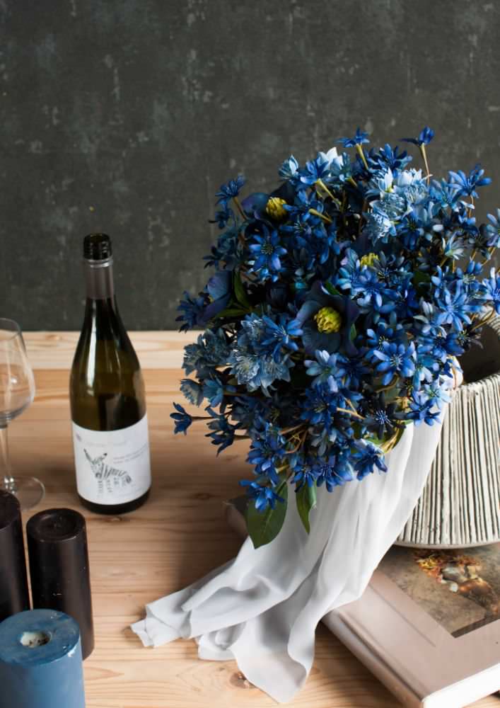 鮮やかなブルーや深みのあるブルーを合わせて、繊細で大人可愛いデザインに仕上げています。