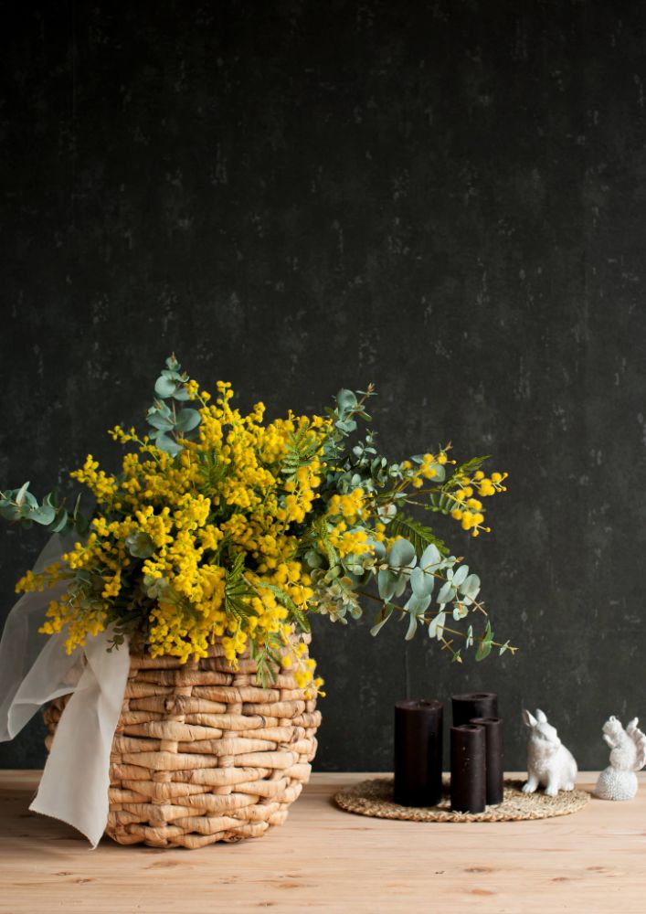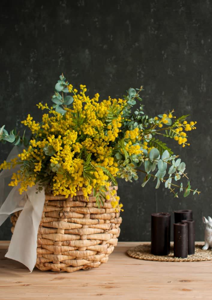 ミモザとユーカリは、どちらもシルバーリーフで相性の良い組み合わせです。