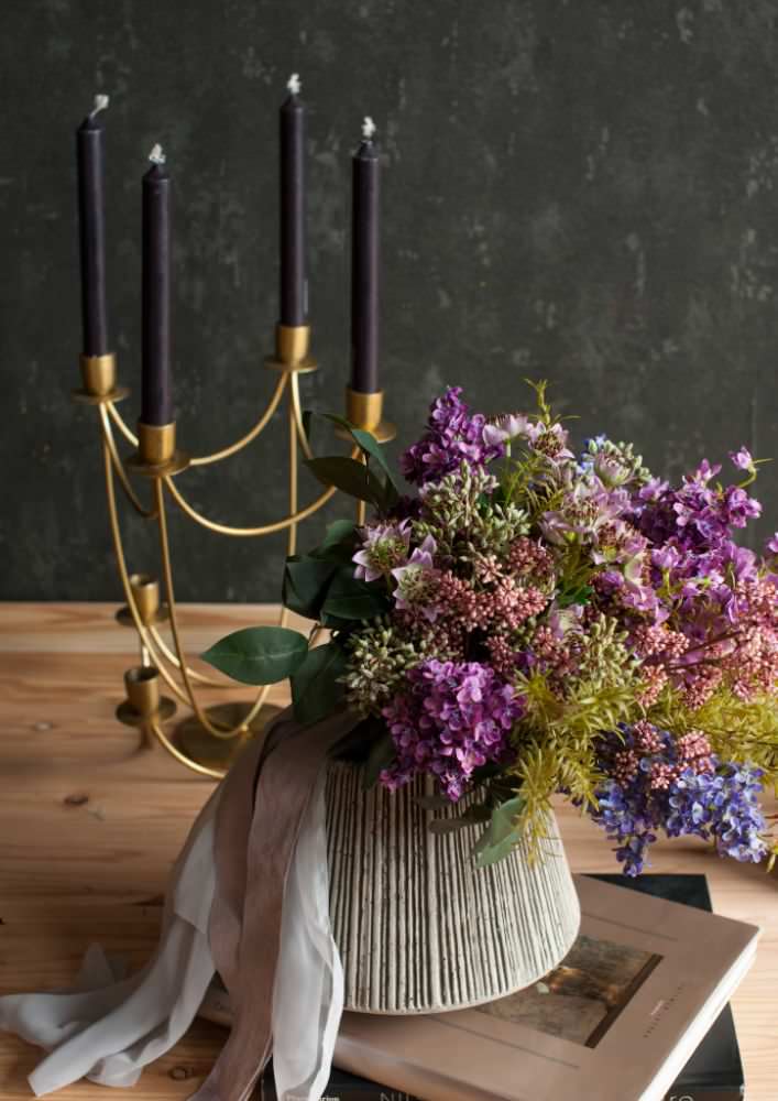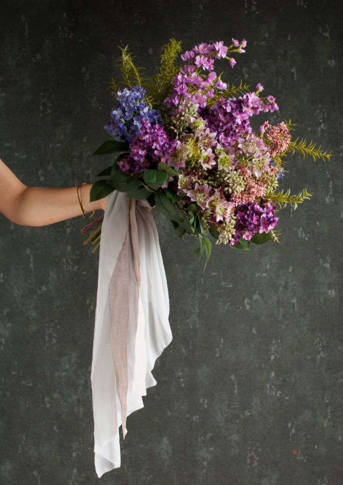 ライラックのような繊細なフォルムの花を野花のようにナチュラルスタイルで束ねて、