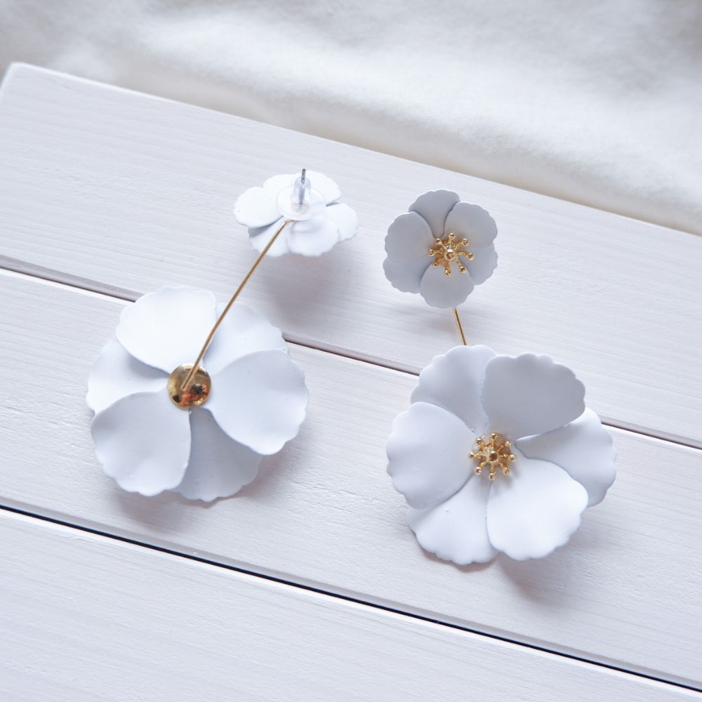 【ピアス】2way ブライダルピアス ホワイトフラワー ゴールド n11 【結婚式 ピアス イヤリング】
