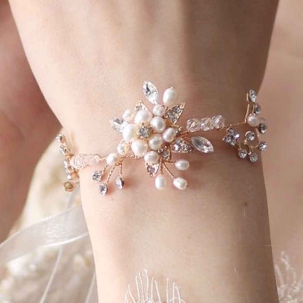 【ブレスレット】ブライダルブレスレット 小枝ブレスレット ビジュー ゴールド n2 【結婚式 ブレスレット】