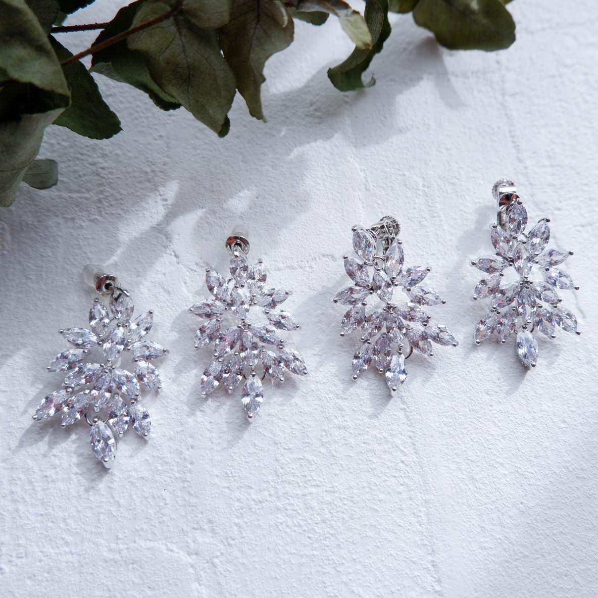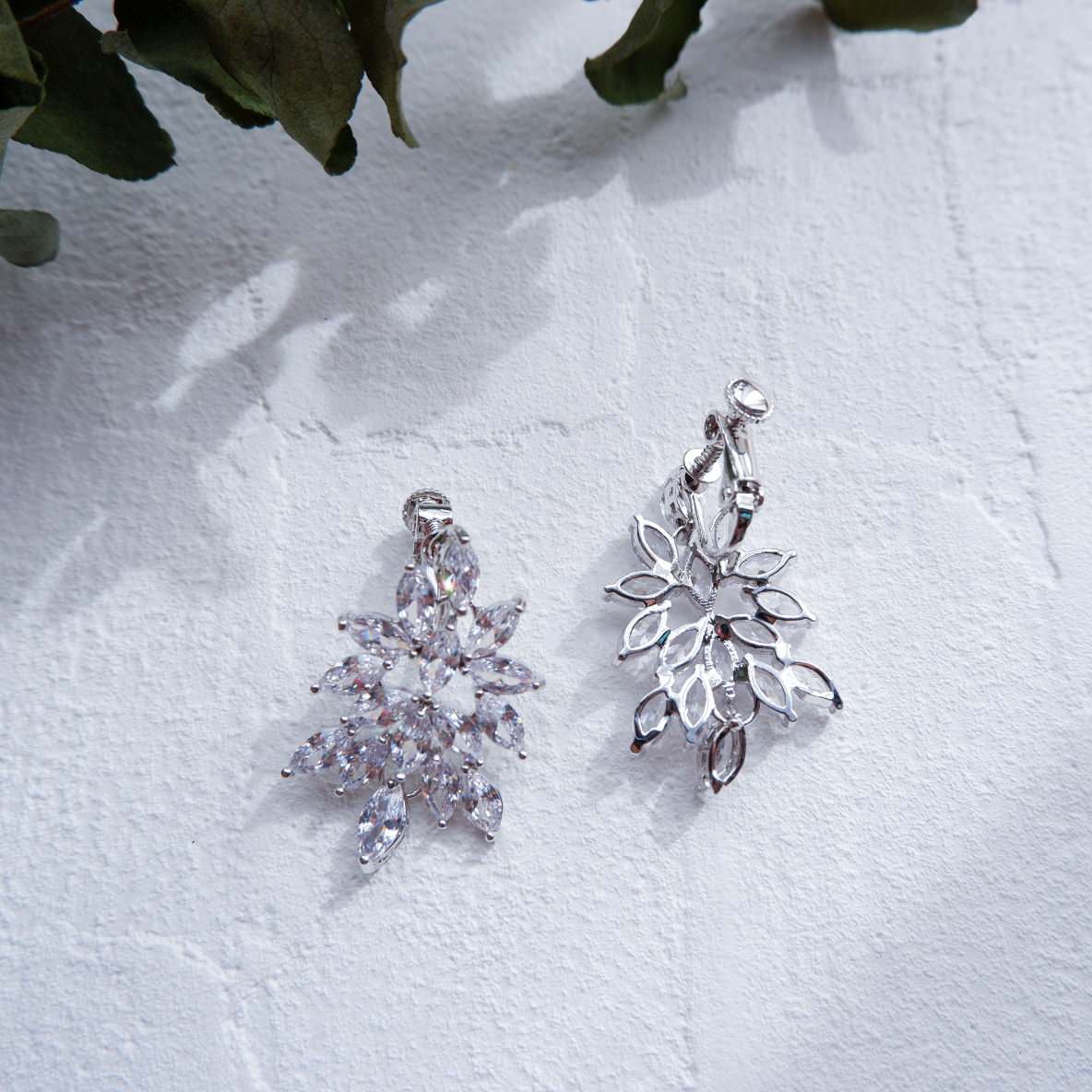 【イヤリング】ビジュー リーフ クリスタル ウェディング ブライダルイヤリング c7 【結婚式 ピアス イヤリング】