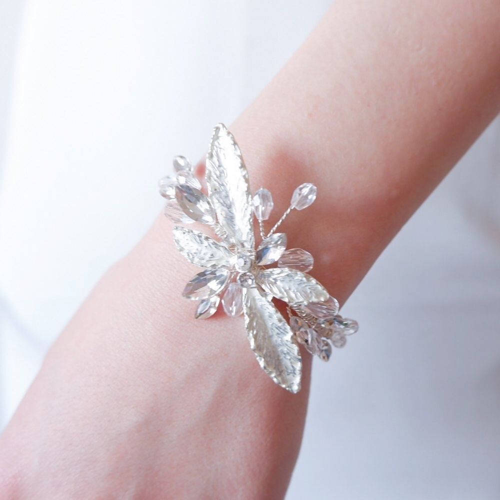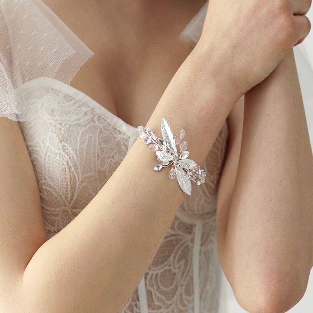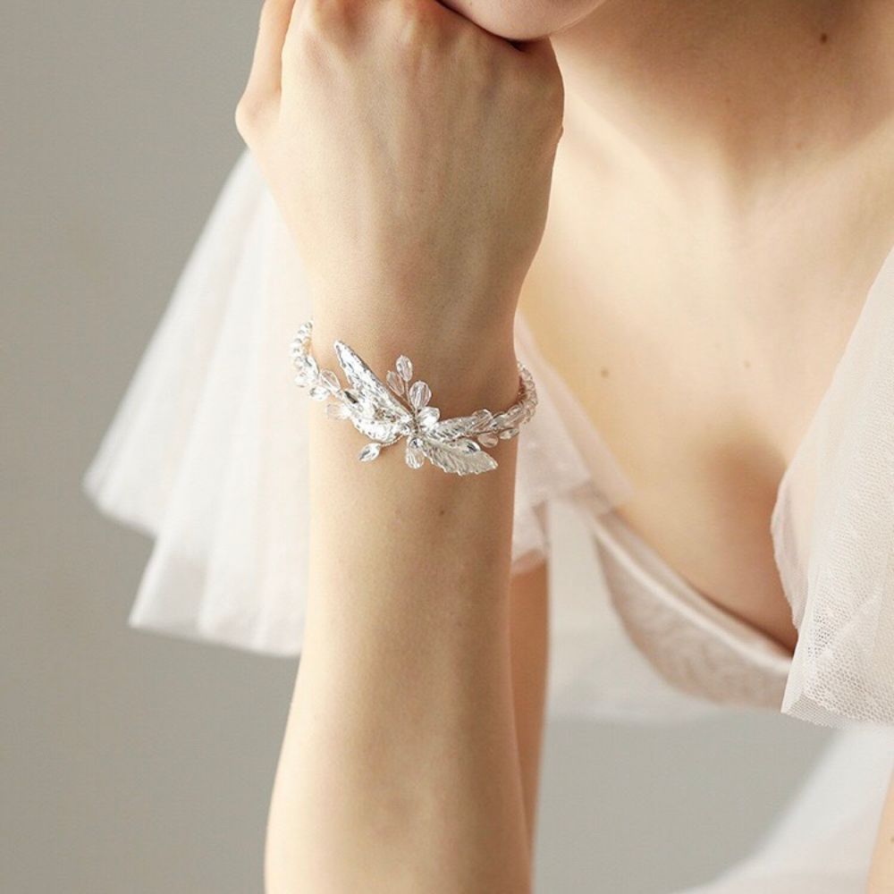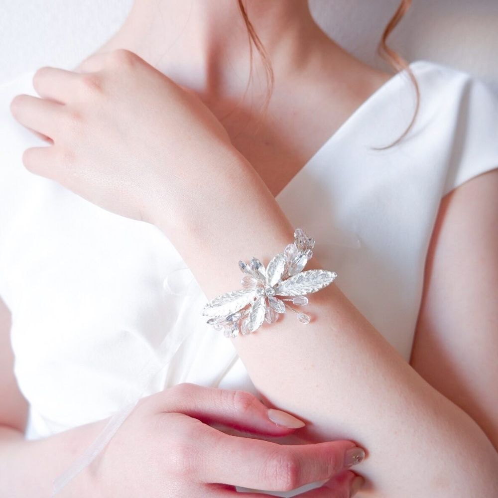 【ブレスレット】ブライダルブレスレット ビジュー リーフ h8 【結婚式 ブレスレット】