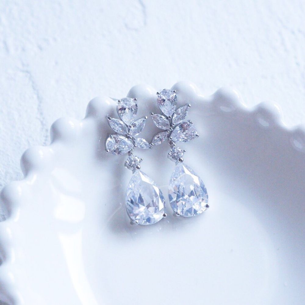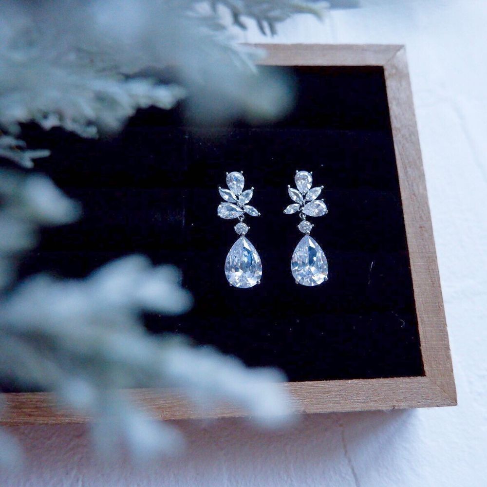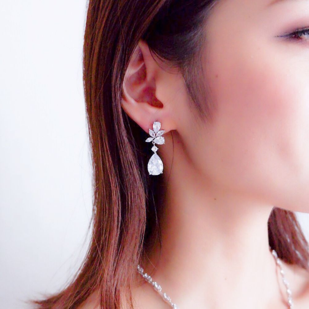 ・どんなドレスでも似合うビジューピアス!ドレスとの相性も抜群!