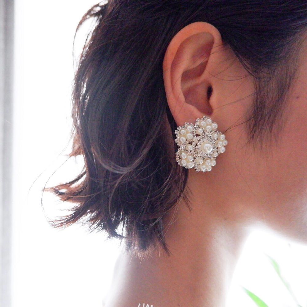 ・たくさんパールとビジューを使用した被らないデザインで華やかなイヤリング