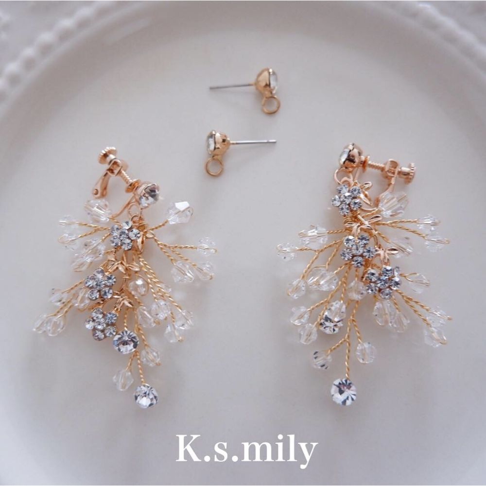【ピアス】ブライダルピアス 小枝ピアス ビジュー ゴールド f5 【結婚式 ピアス イヤリング】