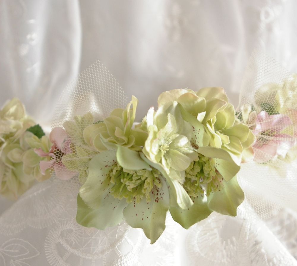 全ての花冠は、お打ち合わせを重ねて、フルオーダーデザインでお作りします。ドレスの雰囲気、花嫁様のイメージを実現したオートクチュールな花冠をご用意いたします。