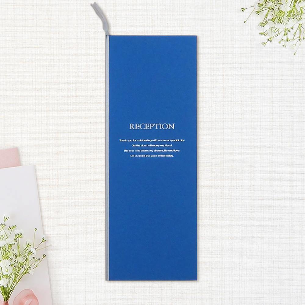 英文メッセージだけのシンプルなデザインながら、鮮やかなブルーの紙ときらりと輝く箔押しが目を引くペーパーアイテムです。