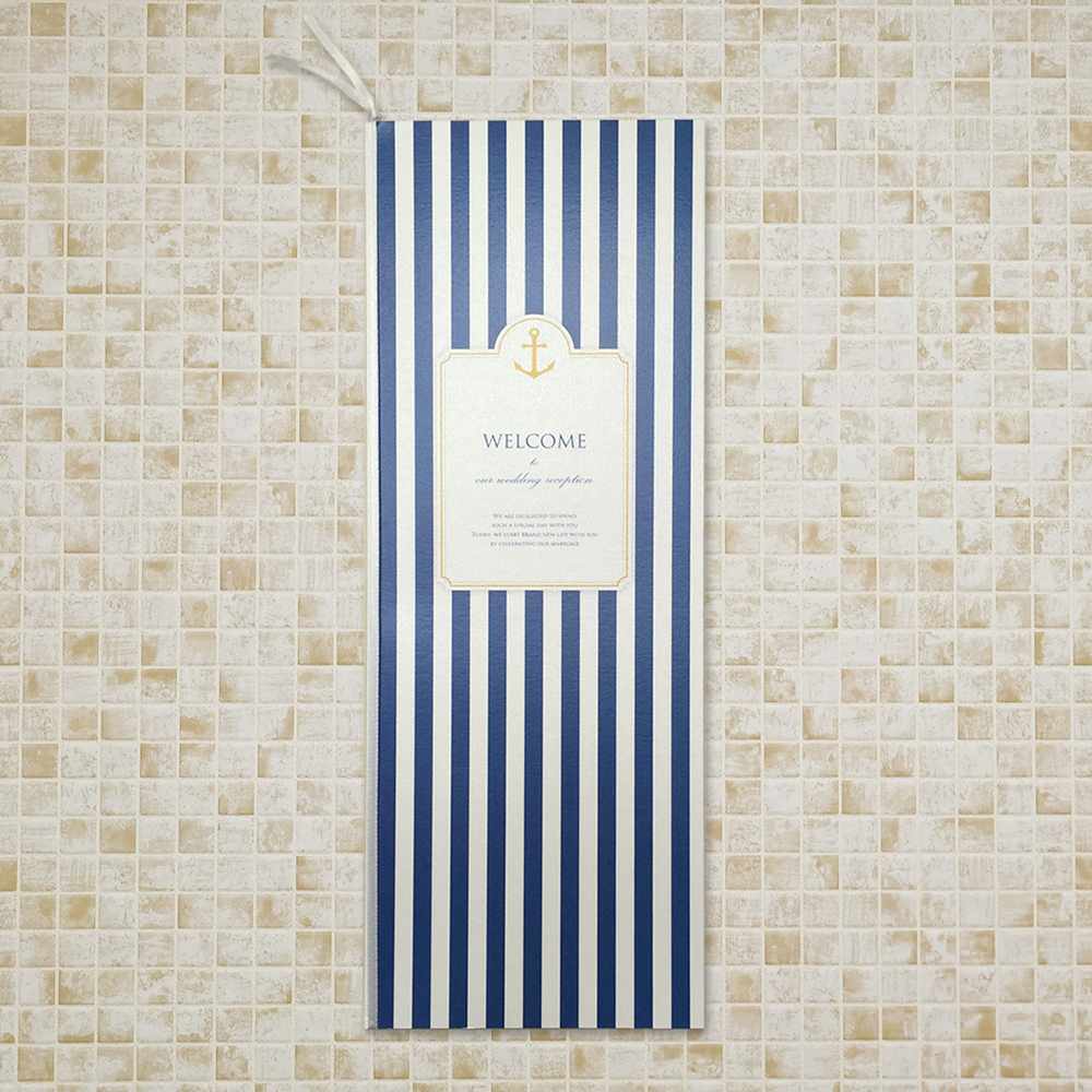 錨のモチーフとネイビーブルーのマリンストライプのデザイン。 落ち着いたフォーマル感のあるマリンウェディングを演出します。