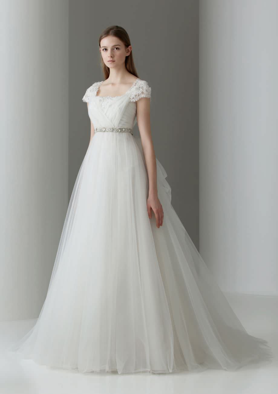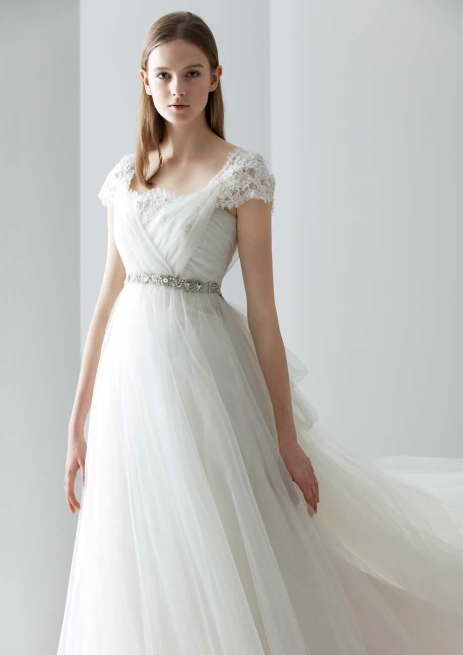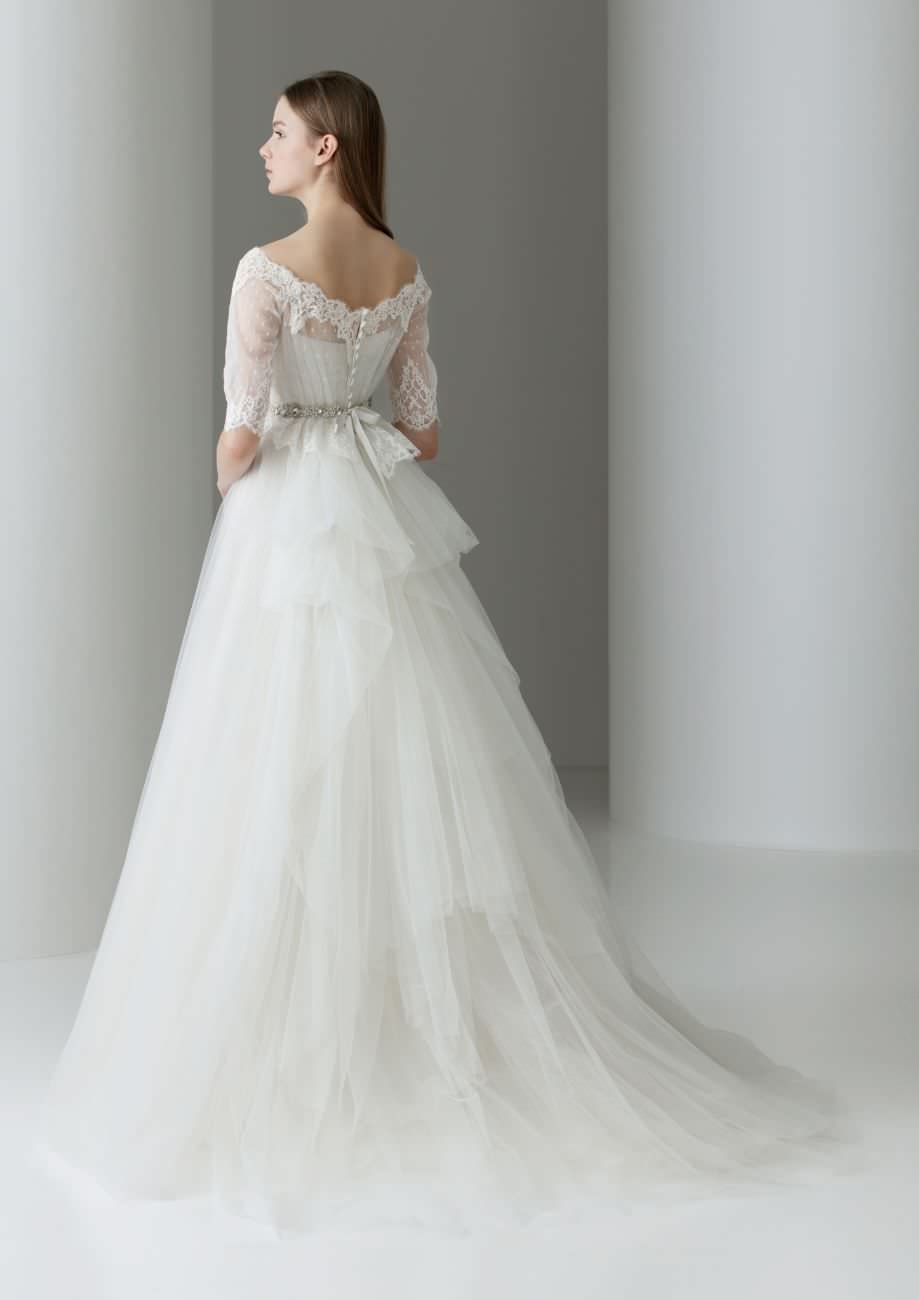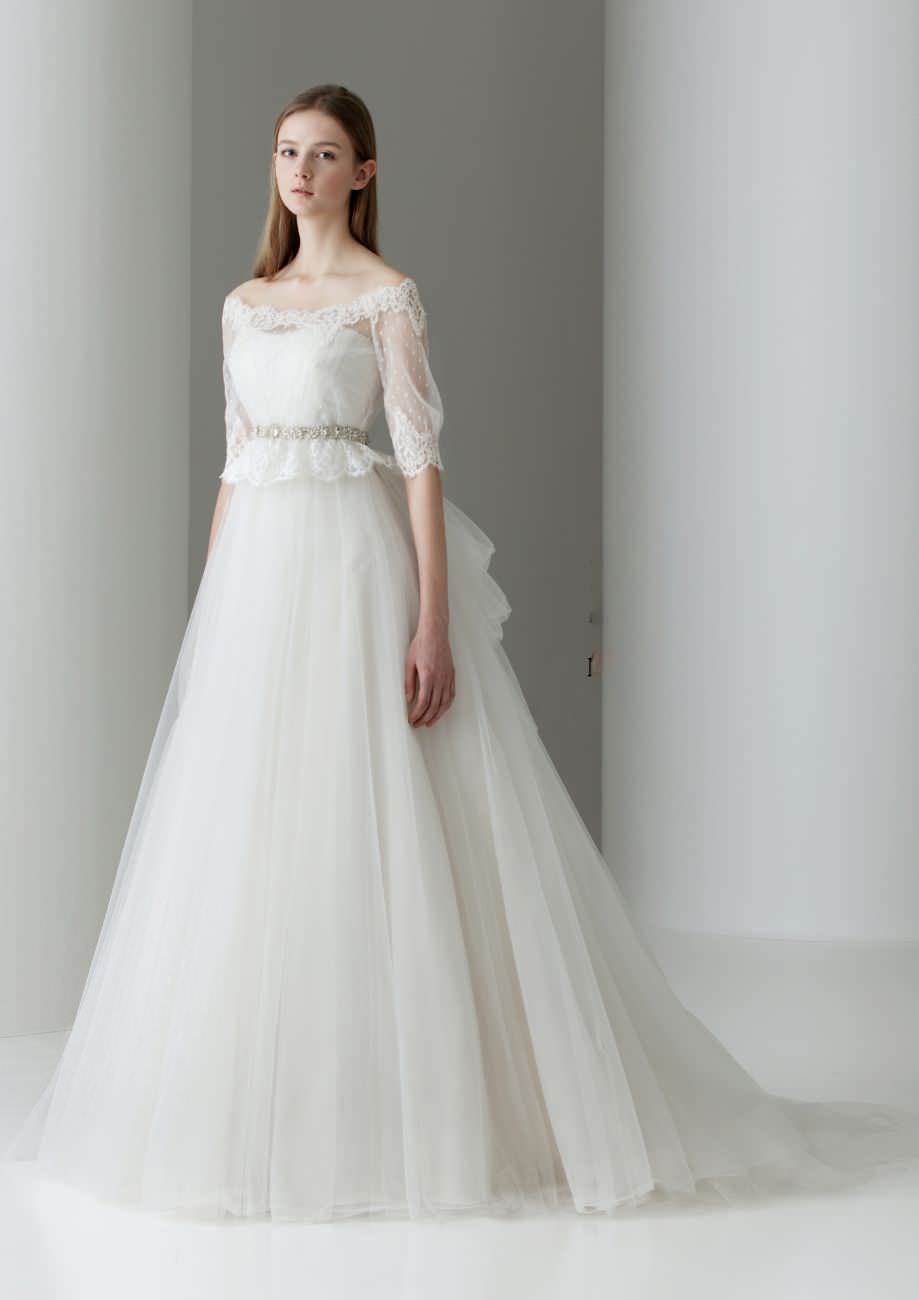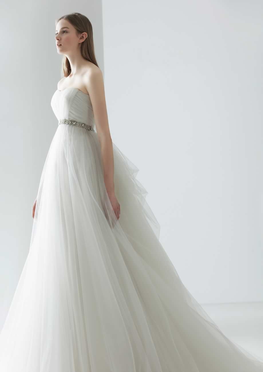 袖を外したプレーンなスカートは柔らかなイタリアンチュールをたっぷり使用したフェアリーでクラシカルな万能ドレス。