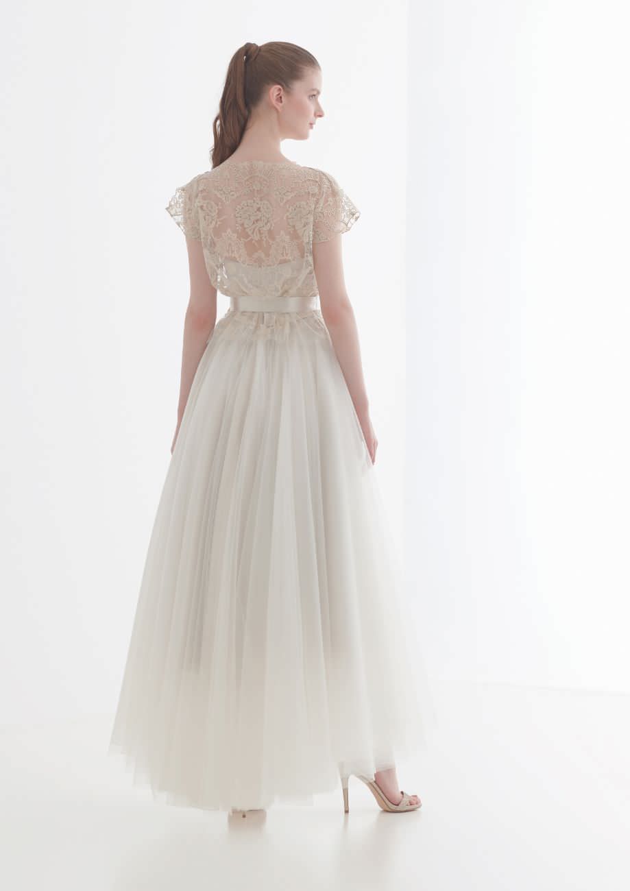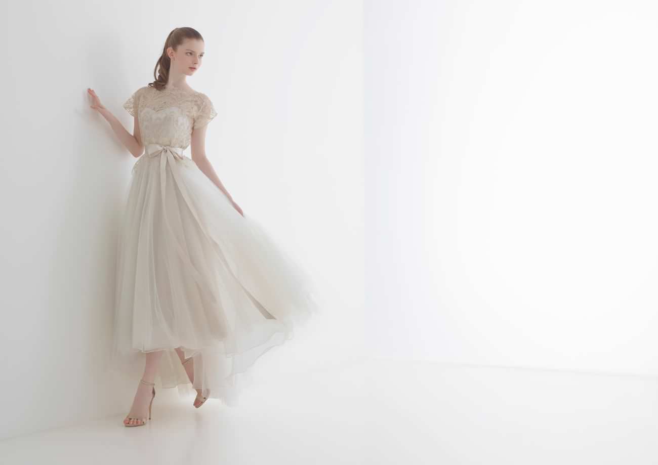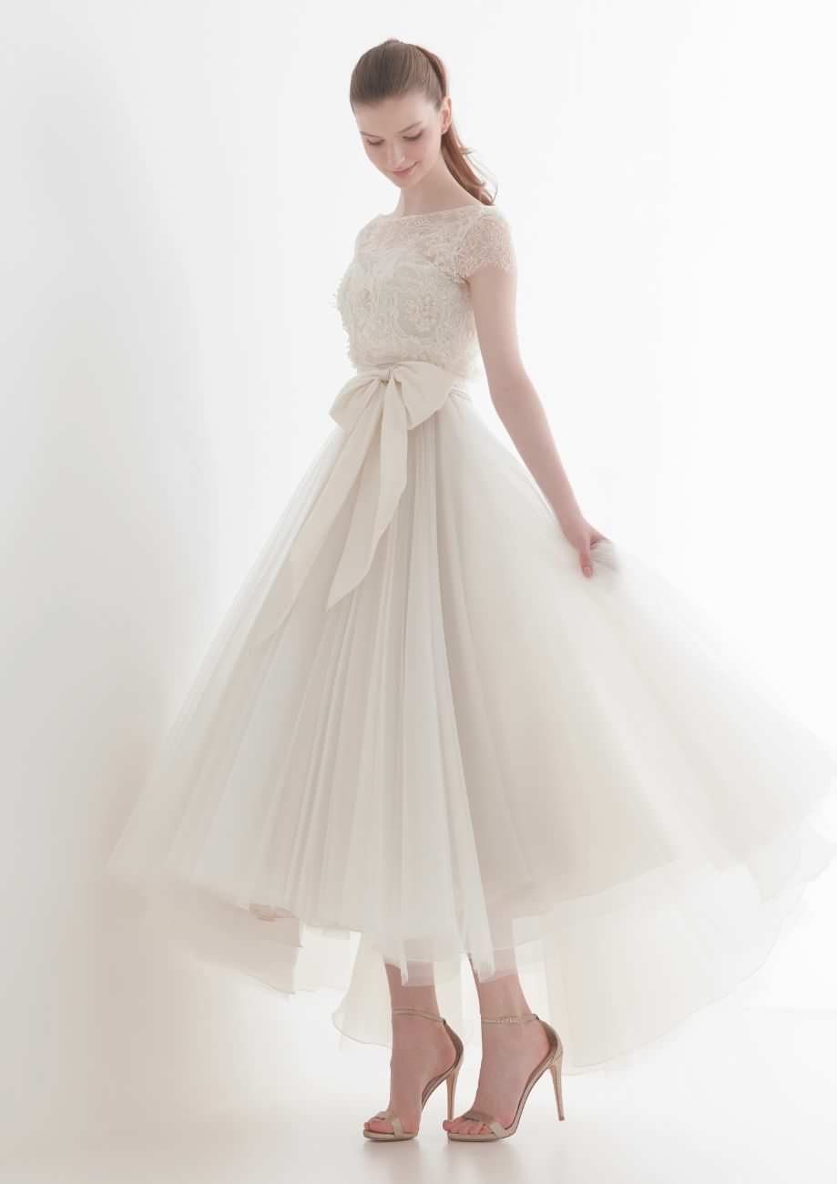 チュールサテンオーガンジーがさらさらと流れるアンクル丈のチュールスカートがロマンティック。