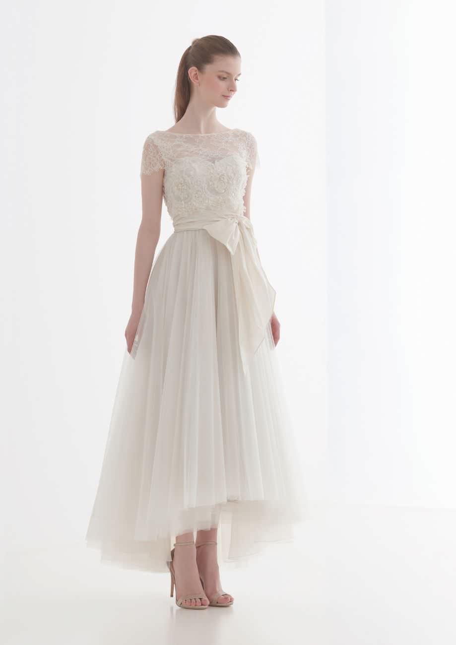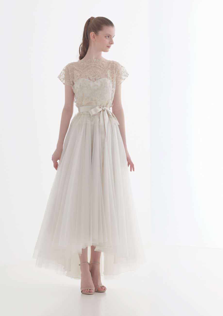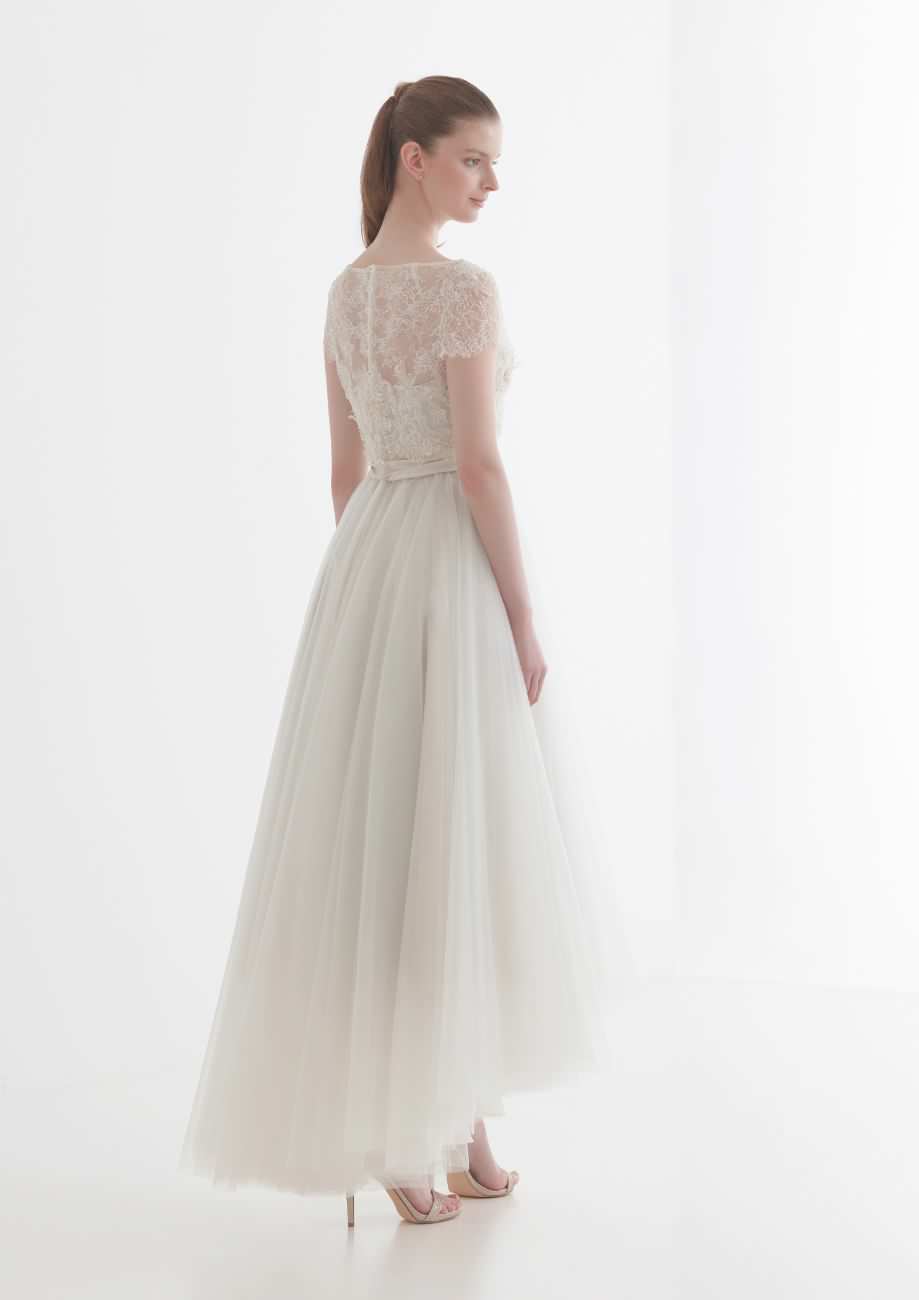 チュールサテンオーガンジーがさらさらと流れるアンクル丈のチュールスカートがロマンティック。