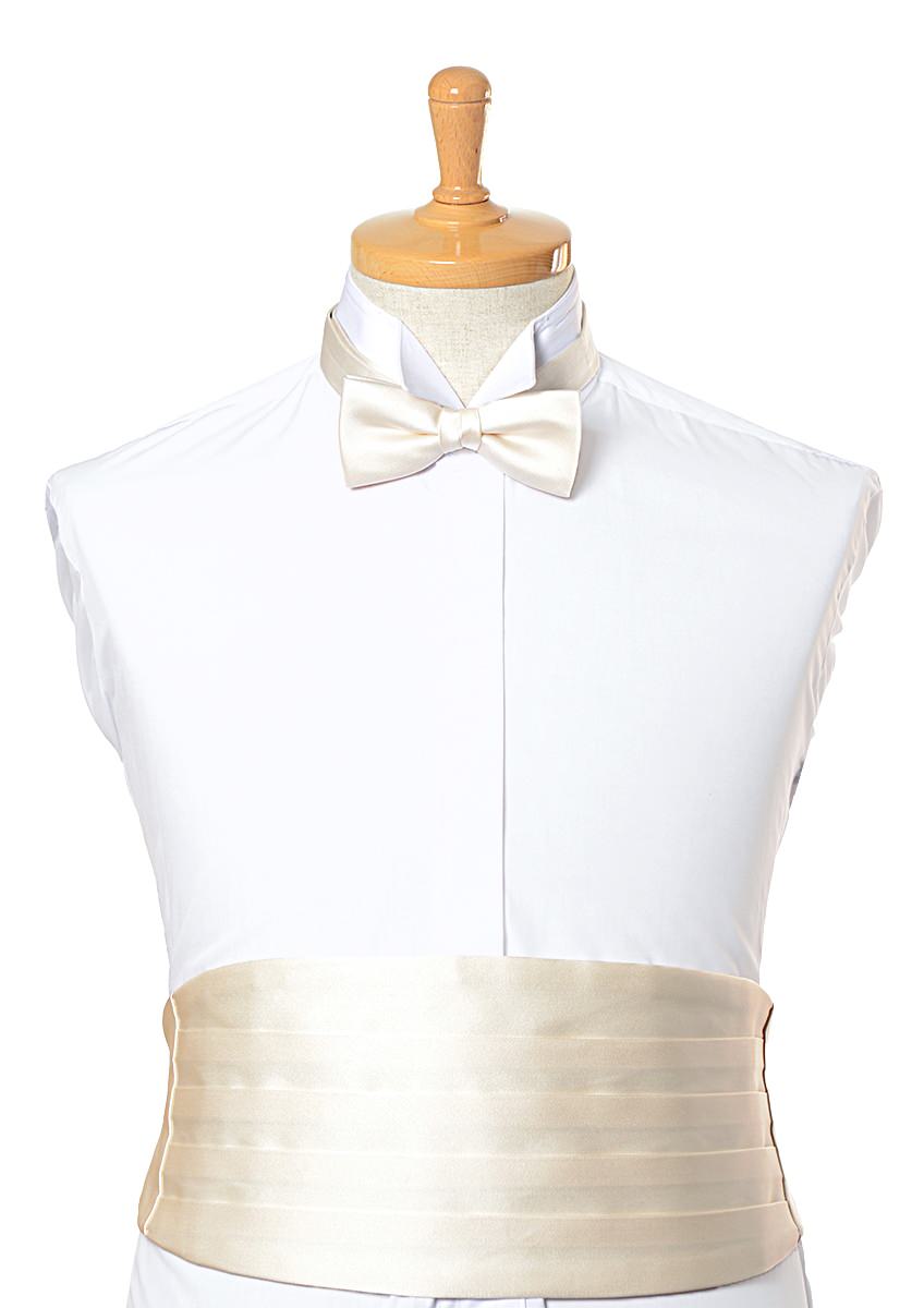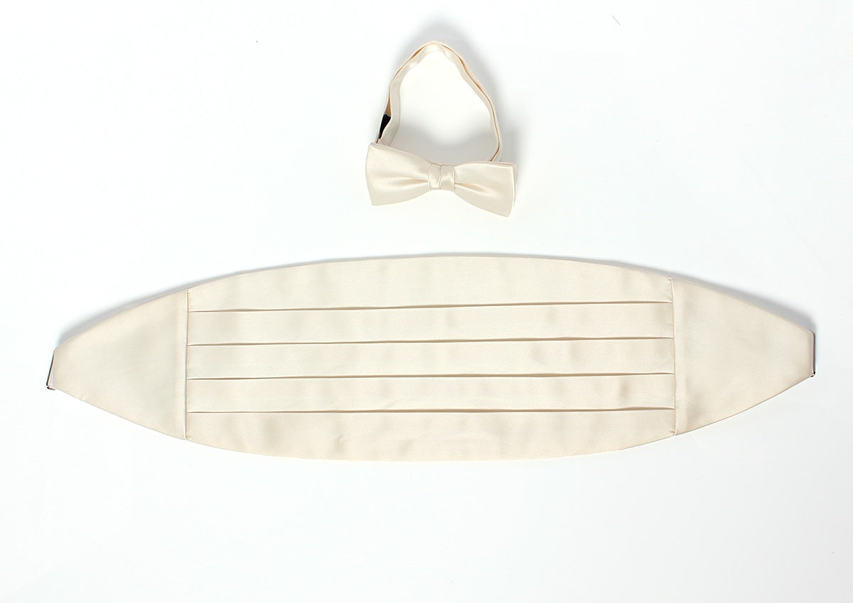 高級素材 拝絹地 を使用 上質な 蝶ネクタイ & カマーバンド セット オフホワイト 【結婚式 蝶ネクタイ】
