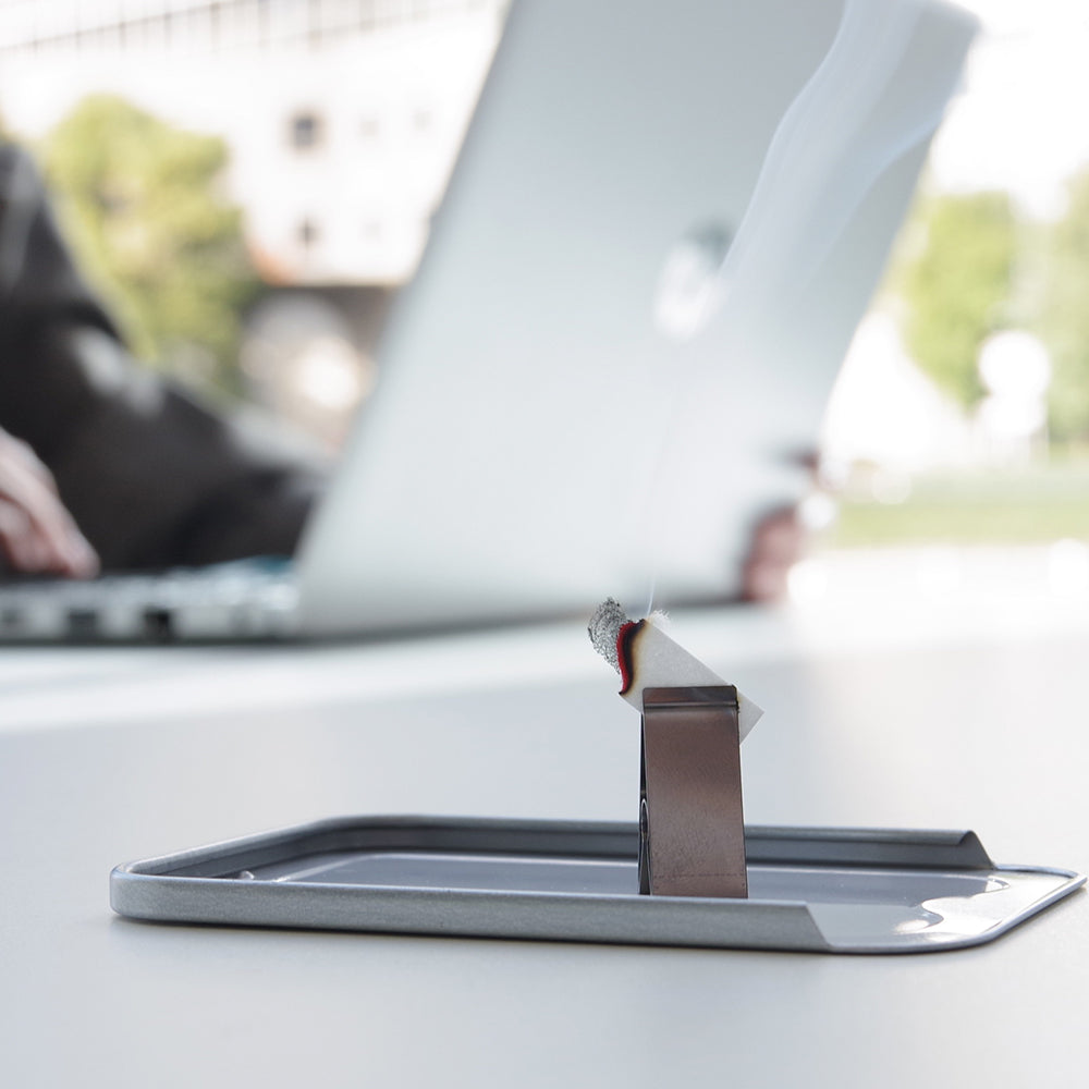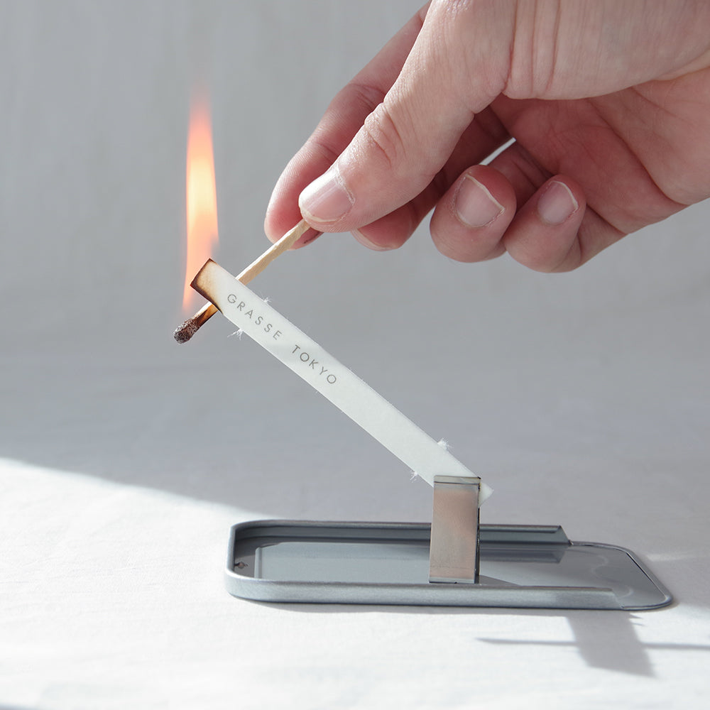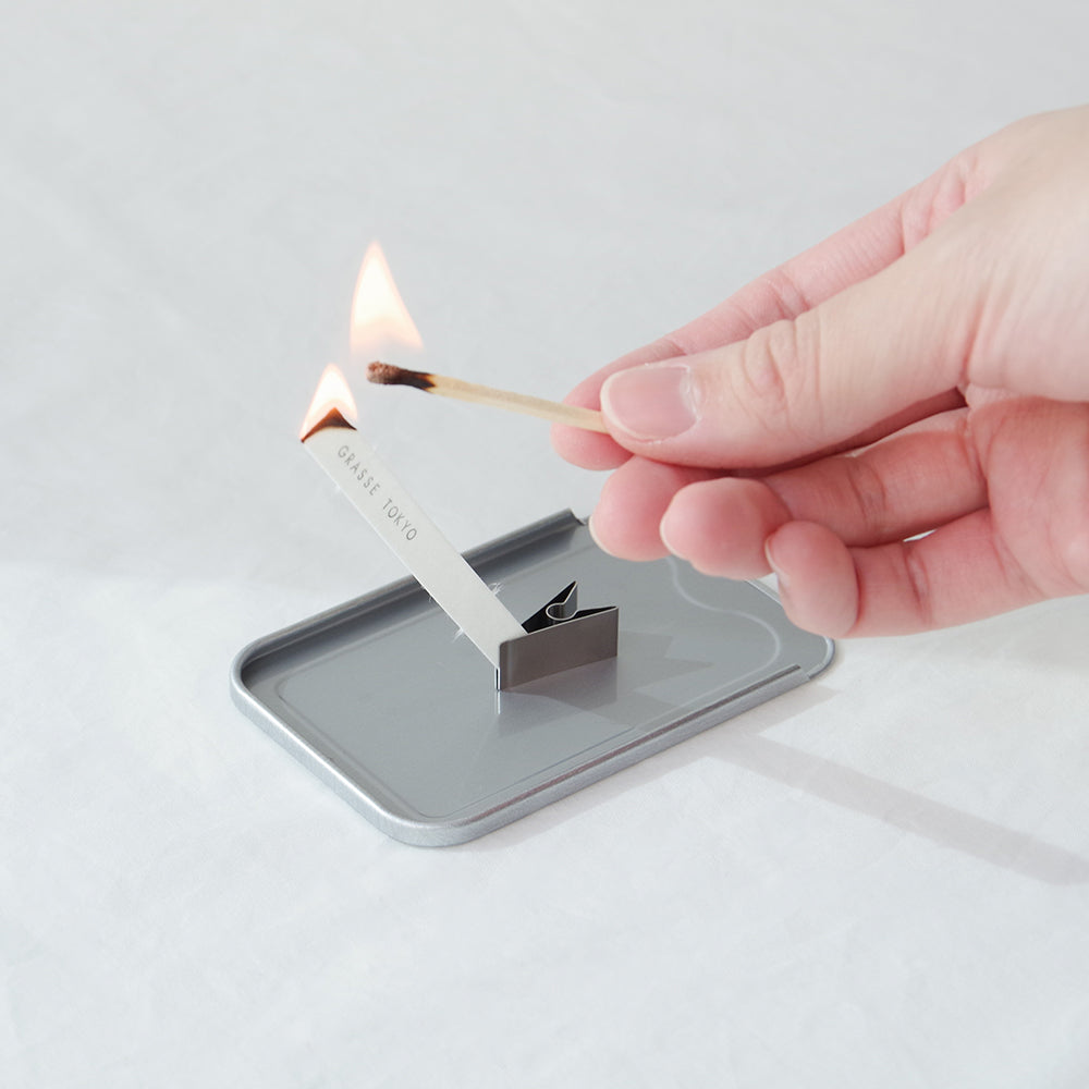 紙香を1枚ずつ切り離して、付属のホルダーに取り付けます。ホルダーをしっかりと抑えながらペーパーインセンスの先端に火を点け、すぐに炎を吹き消して下さい。