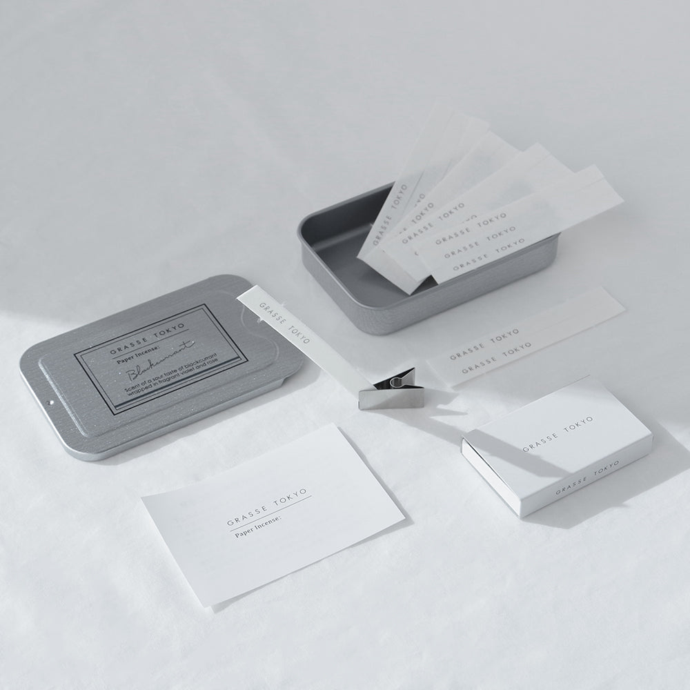 アロマをブレンドするときに使うムエット(試香紙)をモチーフにしたデザインの"紙のお香"です。